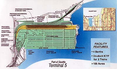 - Designers: Port of Seattle engineering staff, overall design; KPFF Consulting Engineers, site facilities, buildings and railwork; Elcon Assoc., site electrical; Black & Veatch Waste Services, environmental remediation; Woodward, Clyde, environmental remediation; Remediation Technology, environmental remediation; Herrera Environmental Consultants, environment remediation; CNA Architects, buildings; Sajan Inc., buildings; HDR Engineering, railwork; and Rail Transportation Systems, rail control.