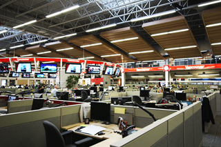 In 2006, the Canadian Broadcasting Corporation undertook a project to renovate and expand its regional headquarters in Vancouver, B.C., where it would broadcast the 2010 Winter Olympics. Wood, a key architectural finish for the project, was installed by Benton & Overbury in the atrium, newsroom and new audience lounge lunchroom. Wood ceiling systems have become a popular choice to provide a focal point and sense of warmth. Typically the systems are a standard size and single dimension, but 9Wood provided 12-inch modules with wood slats of various depths and sizes on this project. The multi-dimensional panels provide definition to the physical space while providing an acoustic treatment to a potentially problematic area. The wood panels had an especially interesting effect in the newsroom, which opens to the roof structure. A large portion of this area remained exposed to the building’s structural elements and is a striking contrast to the accent of cloud-like suspended wood ceilings and numerous skylights that provide a feeling of openness and natural warmth. Benton & Overbury and 9Wood also provided and installed complementary wood slat wall treatments from the entry through the atrium and to the reception area.v Open areas, such as those in the CBC Radio complex, are usually difficult to control sound in, but the acoustical treatment behind the wood slats helps absorb and soften the sound in an area comprised mostly of hard surfaces. Judge’s comment: “The specially designed wood panels from 9Wood, and installed by Benton & Overbury, are a perfect offset to the exposed structure and work well to bring a softer, more organic look to an otherwise stark interior.”