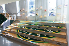 The overarching themes for the landscape design drew inspiration from the coastal landscape and tidal flats that once filled the Interbay area, along with the dynamic energy and power of the Seattle Storm.