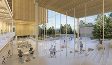 A photovoltaic array will provide on-site renewable energy, and tall windows with vertical shades will maximize daylighting and mitigate glare and summer heat gain.
