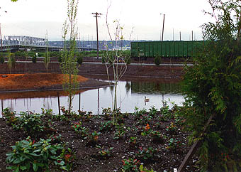 As a part of Simpson's "landscape ecology concept" for the development, the company wanted to promote "greening" of both the tideflats and upland areas that went far beyond what was required or conventional in a typical industrial landscape plan. (In fact, the city code does not require landscaping in this area.)