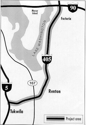 Project description: Work on the 11.3 mile section of SR 405 includes drainage, storm water detention, widening of ramps and bridges, reconstructing shoulder and median sections, building retaining and noise walls, communication and closed-circuit TV, and overlay between Sunset and Coal Creek Parkway. Section will be closed for one weekend in each direction during the overlay.
