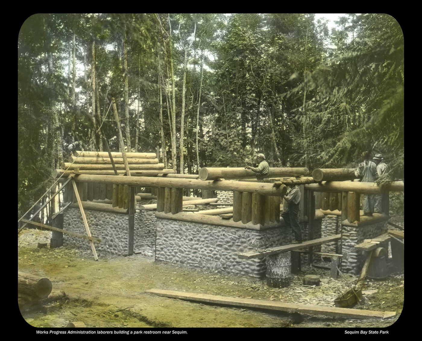 The photographs were taken during the Great Depression and capture the early days of the state park system. They show parks under construction by crews employed through federal programs such as the Civilian Conservation Corps and the Works Progress Administration.